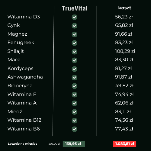 Po szerokich badaniach opracowaliśmy formułę akceptowaną przez klientów, która wspiera naturalne procesy testosteronowe organizmu. Każda porcja zawiera ukierunkowaną mieszankę: Shilajit, Ashwagandha KSM-66®, Maca, kozieradka oraz kluczowe mikroskładniki, takie jak cynk, magnez i witamina D3.